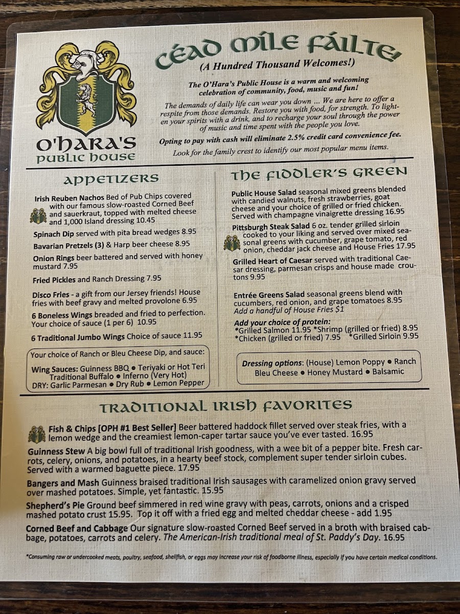 Ground beef simmered in red wine gravy with peas, carrots and onions, topped with a crisped mashed potato crust. *Top it off with a fried egg and cheese.